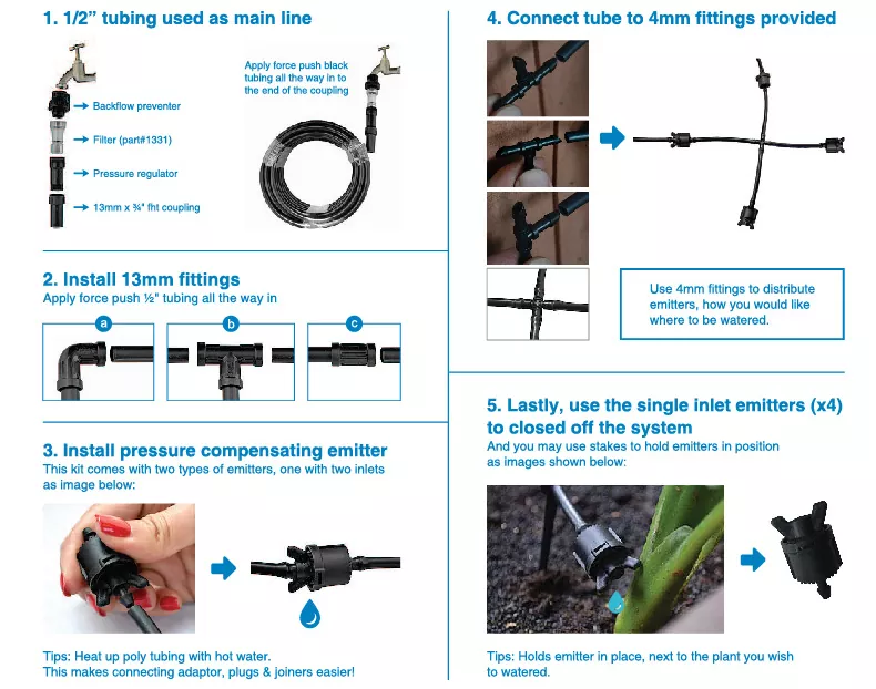 올인원 정원사의 드립 스타터 키트 1, 효율적이고 편리한 점적 관개를 쉽게 만들 수 있습니다. 작은 마당이나 개별 식물에 물을 주는 시스템 2, 점적 관개는 매우 효과적이며 최대 보존합니다. 80% 더 많은 물을 사용하여 비용을 절약하고 천연자원을 유지하다 3, 설정에 필요한 모든 필수 항목이 포함되어 있습니다. 점적 관개 시스템