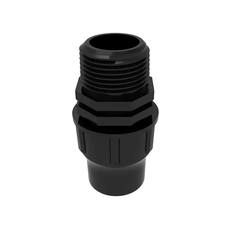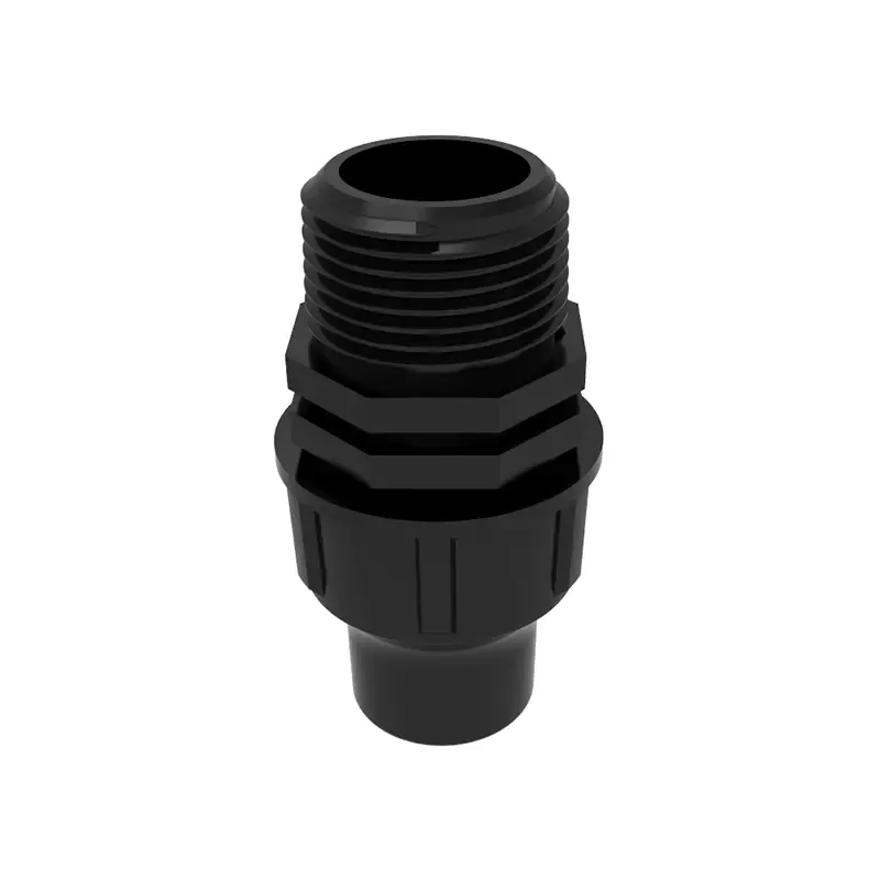 1, 나사형 잠금 설계 PE 파이프와 피팅을 단단히 고정하여 고압에서 단선을 방지합니다.