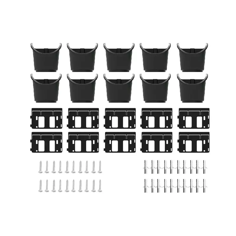 냄비 프로모션 키트 10개 포함: 냄비 10개(1개 없음)와 나사 및 플러그 20개가 포함된 소형 벽 브래킷 10개.