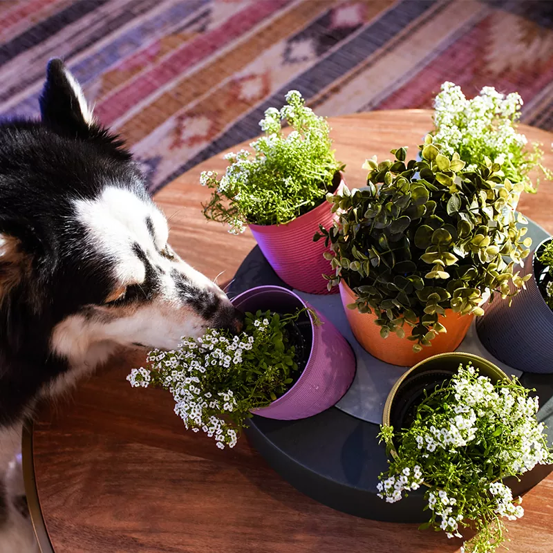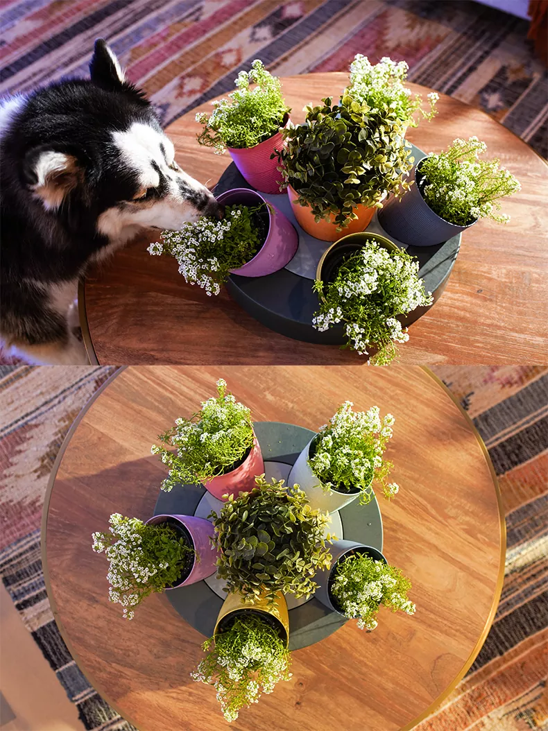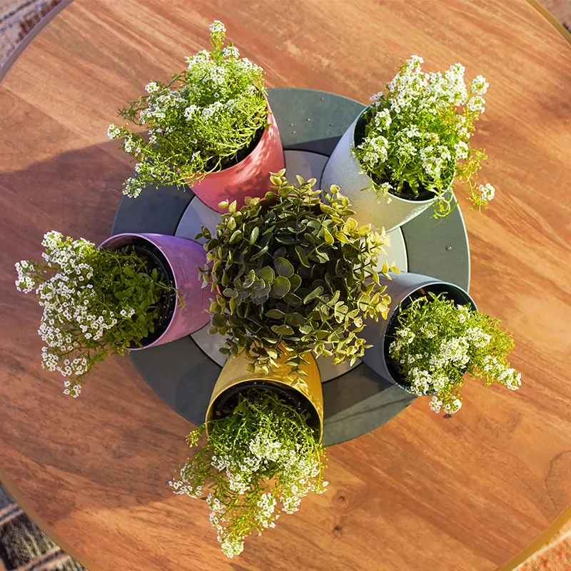 테이블 중앙에 있는 화분에 식물이나 허브를 추가할 수 있습니다.