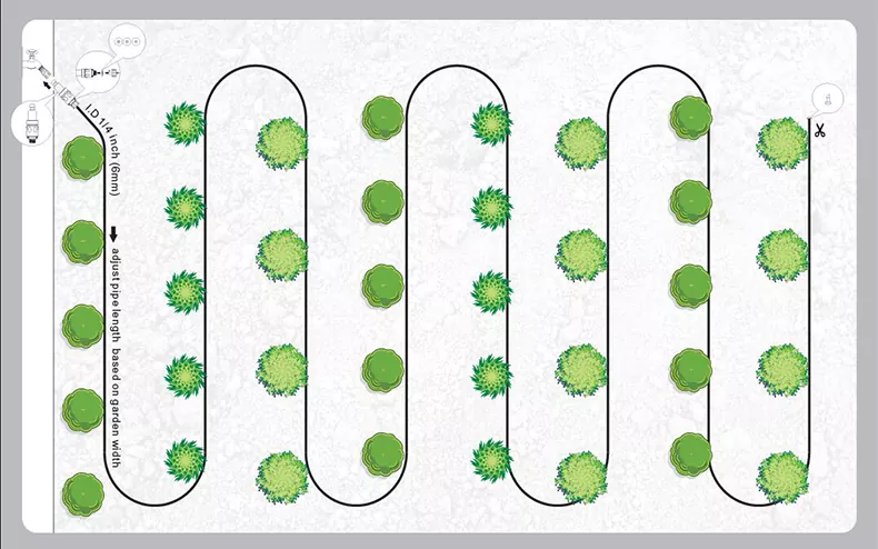 3, 전체 길이 방출 - 전체 호스가 물을 고르게 방출하여 목표 관개를 위해 식물 뿌리 영역을 따라 직접 배치할 수 있습니다.
