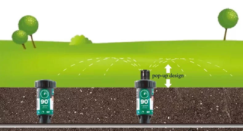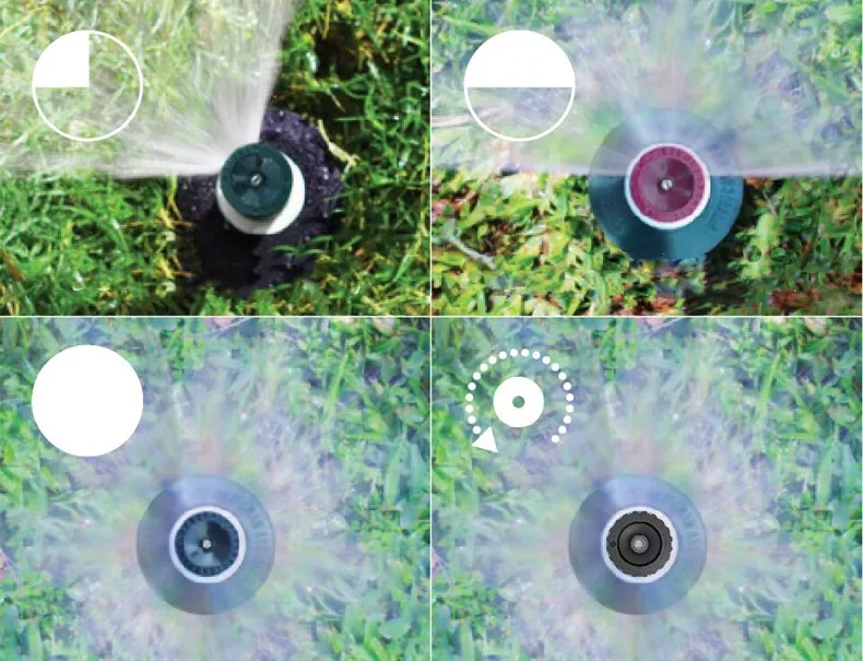 각도 조절이 가능한 지상 스프레이 헤드(사용자가 노즐 교체 없이 스프레이 범위를 맞춤화할 수 있음)