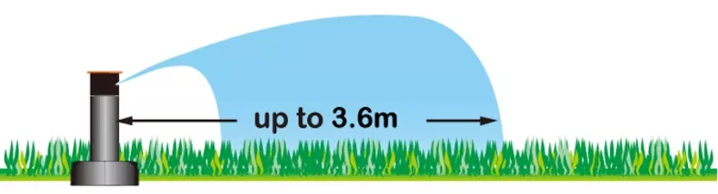 최대 분사 범위가 3.6m인 조정 가능하고 고정된 각도의 스프링클러 헤드입니다.