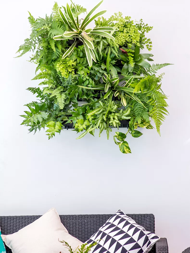 웅장한 GreenWall을 보장하기 위해 화분에 제어된 양의 물을 공급하는 관개 시스템이 포함되어 있으며, 식물에 영양을 공급하고 오래 생존하려면 정확한 양의 물이 중요합니다.