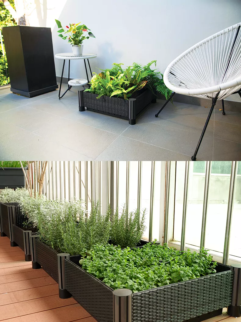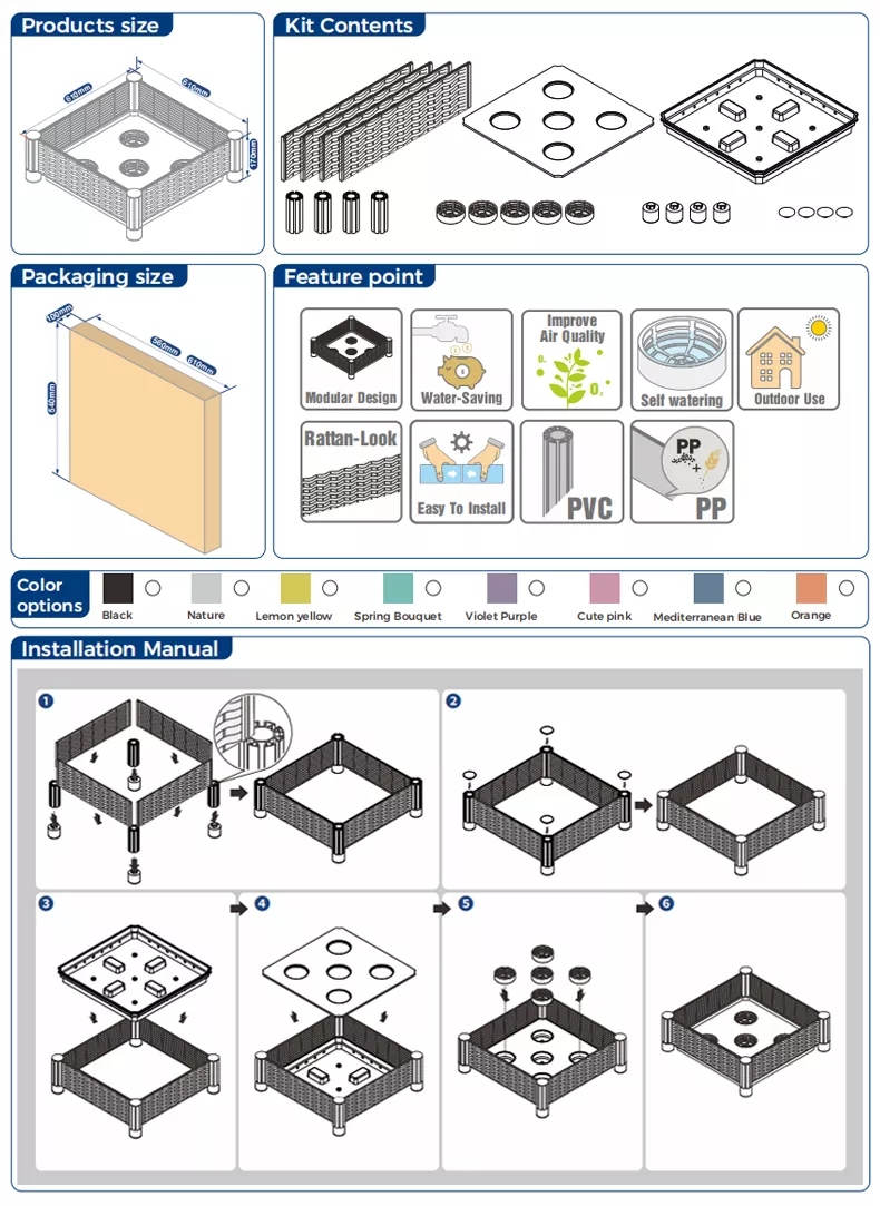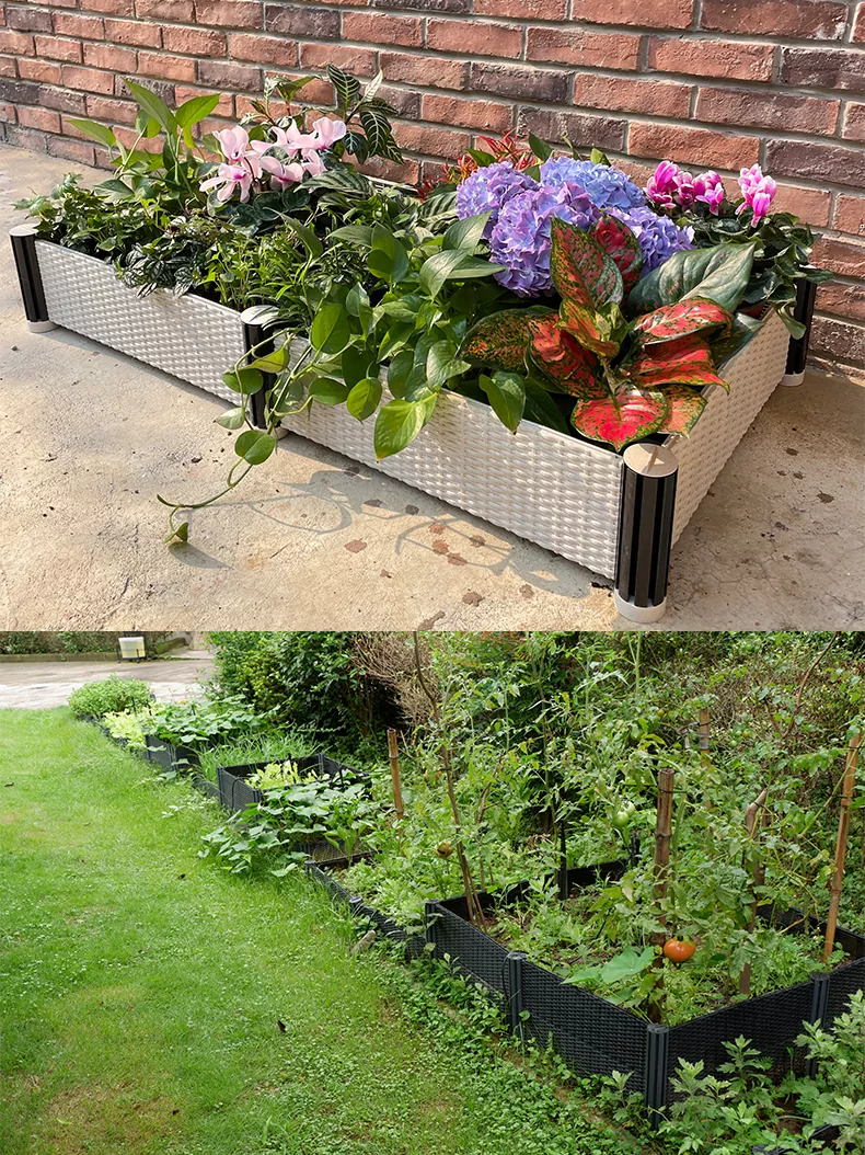 재료 및 장인 정신: 정사각형 모조 등나무 플라스틱 정원 침대는 뛰어난 솜씨를 갖춘 고급 PP/PE 플라스틱으로 만들어집니다. 제품은 수출 시장에 대한 EU/US 품질 인증을 충족합니다.