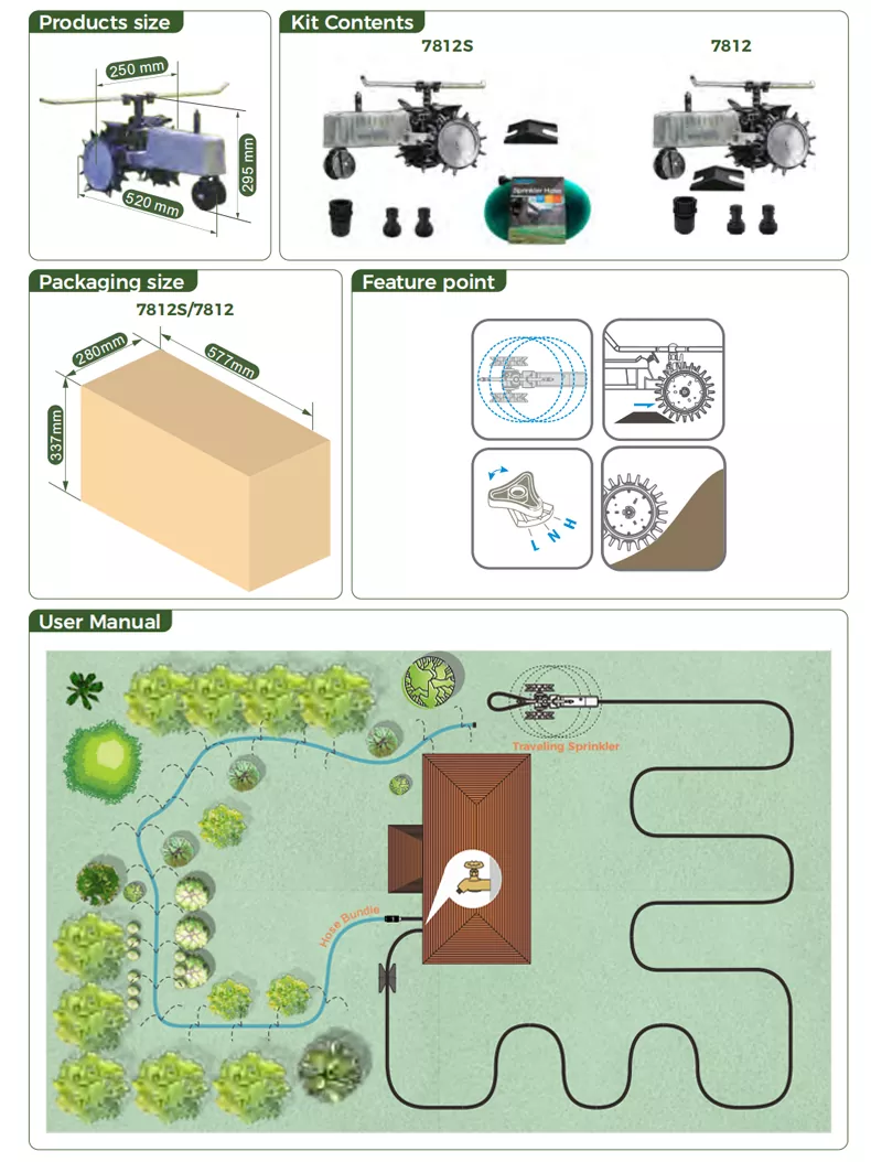 다양한 지형과 관개 요구 사항을 충족하기 위해 조정 가능한 기능이 장착되어 있으며 스프레이 각도는 관개 영역과 정확하게 정렬되어 물 낭비를 피할 수 있습니다. 이동 속도는 필요에 따라 조정될 수 있습니다. 경사지나 함몰지 등 복잡한 지형에서도 안정적인 작동을 유지할 수 있어 잔디밭 구석구석까지 물을 고르게 공급하고 "일부 지역은 물을 완전히 공급하고 다른 지역은 건조"하는 문제에 작별을 고합니다.